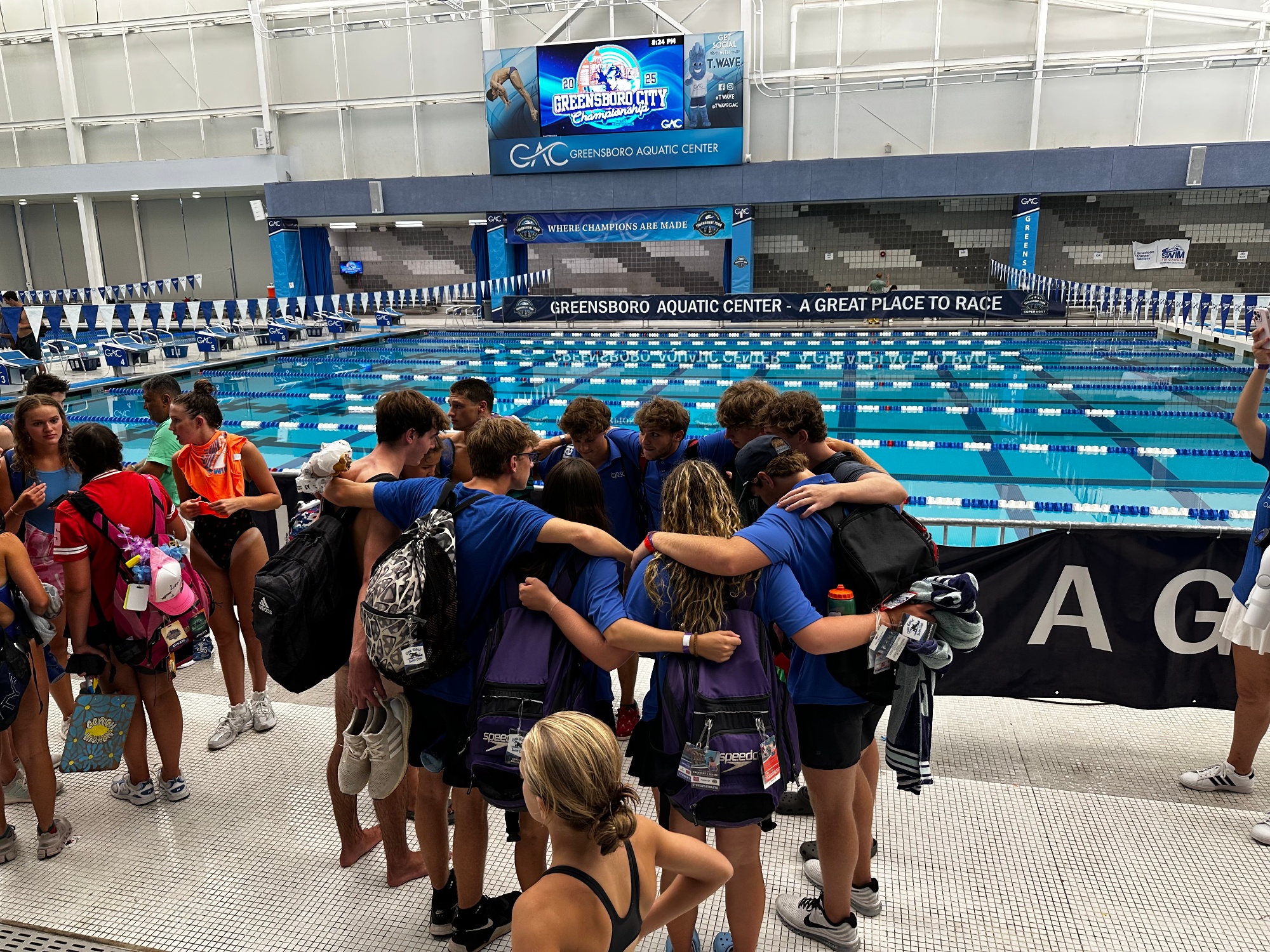 The Community Swim Association was formed in 1958 by a local dentist, Dr. James Finn, with the help of Red Cross Water Safety Director, Garland Murray. Seven teams participated in the first City Meet held the following year: Friendly Homes, Sedgefield Country Club, Hamilton Lakes, Guilford Hills, Lawndale, Elks Club, and Greensboro Swim Association Junior Team. Lindley Park pool was the home of the City Meet for many years, until it was moved indoors in 2012, never to be rain-delayed again.